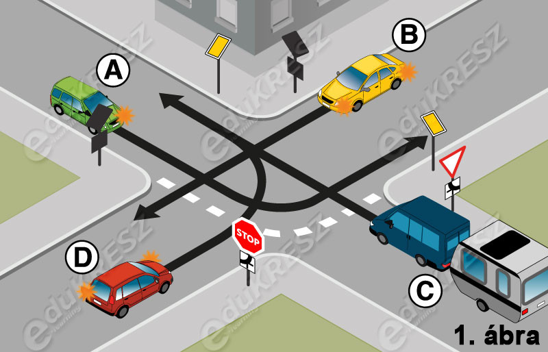 Védett kereszteződés;   ki ne ismerné a sárga rombusz alakú jelzést, amelyik egyedi alakkal és színnel rendelkezik, egyébként pont azért, hogy ne lehessen semmivel összekeverni, sőt még hátulról is fel lehessen ismerni.