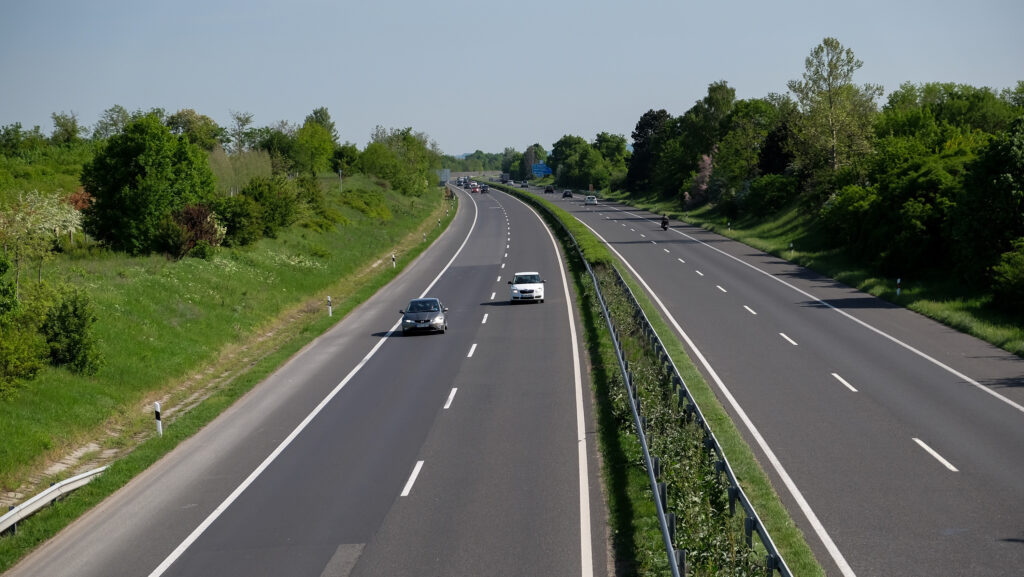 Az elválasztó faltól kifelé haladva, egyre lassabb haladásra rendelt sávok következnek, végül zárróvonallal elválasztva a leállósáv van. Az autópályán nincs kereszteződés.