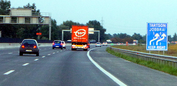 A párhuzamos közlekedésre alkalmas olyan úttesten, amelyen az azonos irányú forgalom számára kettőnél több forgalmi sáv van útburkolati jelekkel kijelölve, az ilyen úttesten a második forgalmi sávban bármely gépjárművel szabad közlekedni, a harmadik és további forgalmi sávokra – a balra kanyarodás esetét kivéve – ráhajtani csak személygépkocsival és motorkerékpárral szabad.