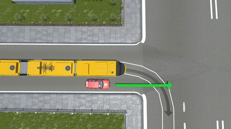 – kanyarodáskor a mögülünk érkező villamosnak elsőbbsége van, akkor is, ha kanyarodik